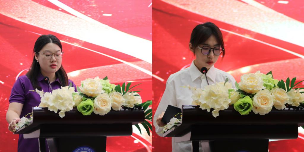 会上,优秀党支部书记代表陈书芳和优秀学生党员代表程子悦分别作了精彩发言。他们结合自身工作和学习经历,分享了践行党员初心使命的感悟与担当,发言质朴真诚、充满力量,充分展现了新时代共产党员的责任与风采。