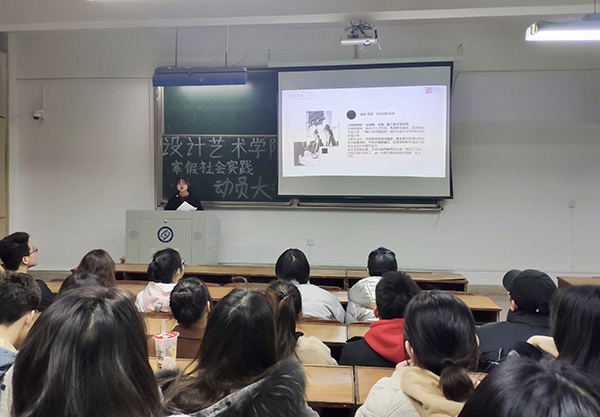 本次寒假实践活动动员会成功举办,使艺术学子对自身责任与使命有了更加深刻的认识,大大提高了艺术学子对寒假实践活动的兴趣。这不仅增加了设计艺术学院的凝聚力更展现了艺术学子昂扬向上的精神面貌。