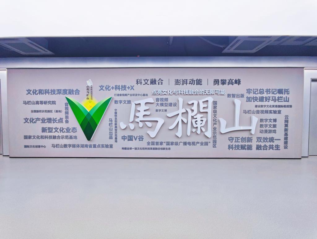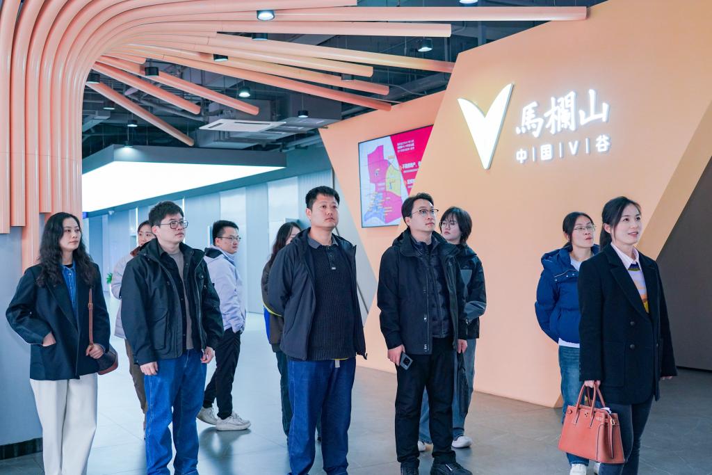 马栏山视频文创园管委会副主任刘飞、行政审批服务局局长陈铭、副局长罗欣灿等热情接待了郭剑一行。在园区工作人员的引导下,走访团队先后参观了马栏山科文融合展厅,通过沉浸式体验、实物展示与图文介绍,详细了解了园区的发展历程、产业布局、核心技术研发及重点企业运营情况。展厅内,数字内容创作、新媒体技术应用等领域的创新成果,让师生代表们直观感受到文创产业的蓬勃活力与发展潜力,为毕业生搭建了了解行业前沿的窗口。