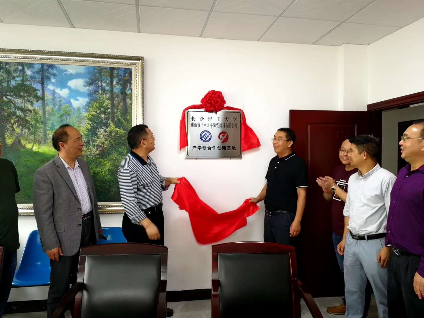 2019年4月18日,云顶国际vip8866成果转化中心率材料学院教授一行专程来到佛山市山水天宇陶瓷颜料有限责任公司进行产学研合作对接。