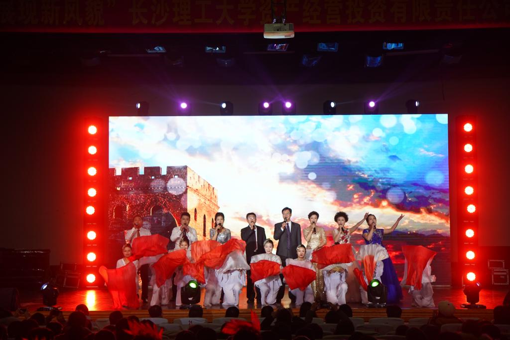 湖南华罡规划设计院有限公司可爱的设计师们表演的舞蹈《华罡炫舞》拉开了演出的序幕,他们动感的舞步、洋溢着青春的活力,诠释了新时代产业人独特的魅力;育才-布朗交通咨询监理有限公司带来的歌、舞、颂《共筑中国梦》,歌颂了祖国改革开放40年来取得的辉煌成就,展现了监理人丈量祖国山水、书写祖国蓝图的豪情情怀;电气成套设备厂联唱《明天会更好》,祝愿我们的祖国永远繁荣昌盛,世界和平;长沙理工大公路工程试验检测中心表演的舞蹈《劳动托起中国梦》,正如习近平总书记说的:“人世间的美好梦想,只有通过诚实劳动才能实现”;长沙华南监理公司表演的三句半《说说华南事》,向在各项目、工地一线的劳动者礼赞;云顶国际vip8866印刷厂表演的合唱《爱我中华》,歌唱我们伟大国家昌盛富强;长沙华南土木监理有限公司带来的合唱《九儿》,是著名文学家莫言先生笔下那敢爱敢恨的顽强斗士,她轰轰烈烈、期待光明的故事一直被传唱;总公司全体职员带来的配乐诗朗诵《为了祖国的明天》,以灿烂辉煌的成就向世界宣告着中华民族的重新崛起;育才-布朗公司李树云带来的独唱《等待》承载了每个人心中那一股热血和一个大国梦;湖南华达工程有限公司带来的舞蹈《龙腾盛世》,展现了改革开放四十载,中华民族正以崭新姿态屹立于世界的东方,巨龙腾跃、承平盛世的崭新面貌。一个个精彩的节目不时将演出推向高潮,现场不时响起热烈的掌声。最后文艺晚会在唐万萍领唱、全场的观众合唱的《难忘今宵》歌声中圆满落幕。