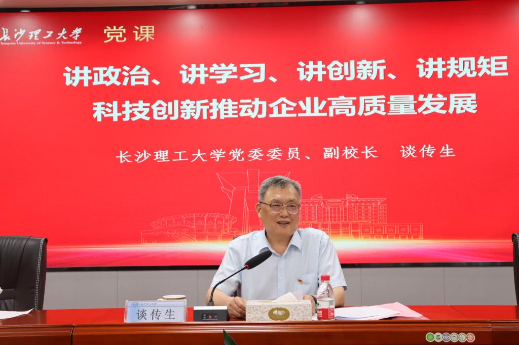 会上,谈传生发表了讲话,并讲授党课。他对投资公司党总支建设取得的成绩表示认可,肯定了广大党员干部讲政治、讲大局、站在学校发展高度勇于牺牲个人利益,为学校发展做出了贡献,并提出要求:一是要讲政治,坚持党建引领。强化政治担当,全面贯彻党的二十大精神,围绕学校工作中心,服务学校高质量发展。二是要讲学习,加强班子建设。要有“政治家”的视野、“企业家”的担当、“教育家”的情怀,坚持“政治建企,文化兴企,科技强企”发展战略,实现企业可持续发展。三是要讲创新,加快企业发展。创新经营模式,优化管理链条,不断提高社会效益和经济效益。四是讲规矩,守牢法纪底线。建立健全现代企业制度体系,努力提升企业治理能力和治理水平。