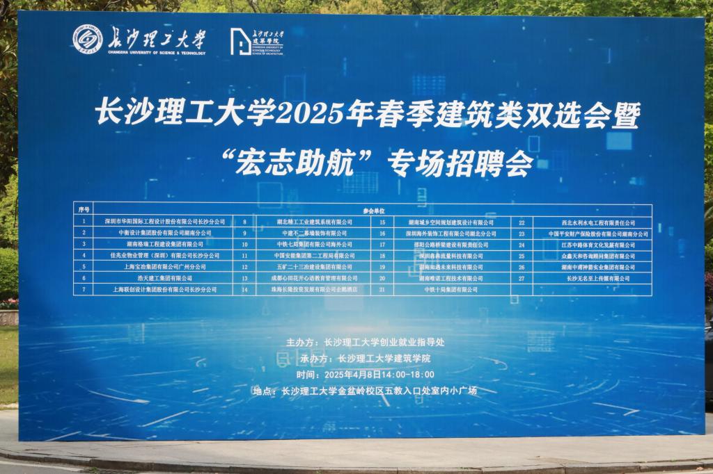 4月8日,云顶国际vip8866建筑类双选会暨“宏志助航”专场招聘会在金盆岭校区5教成功举办。本次招聘会共邀请38家企业参加,提供建筑类、土木类、交通类、财务类、电气类以及专业不限的招聘岗位超900个,现场参加学生超过400名。